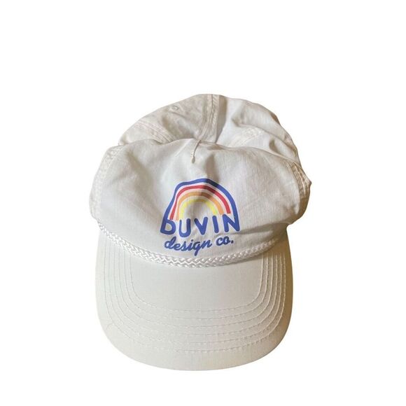 Keywords: Duvin Design Co, adjustable cap, baseball cap, unisex, white cap, nylon cap, snapback, casual wear, solid pattern, durable cap, pre-owned cap, good condition.