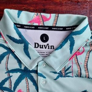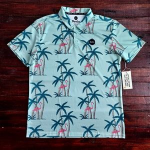 Duvin Tropical Hour Palms and Flamingos Golf Polo NWT Size Large