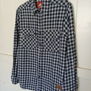 Dux-Bak Thomas Cook Shirt Mens Small Thermal Brushed Cotton Button Up Blue Plaid