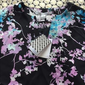 Contrast color lends a mottled effect to the floral print on this airy DVF blouse. Split V neckline. Slit arm openings.