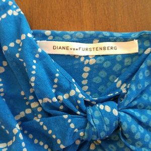 Gorgeous 100% silk stretch, rouched Diane von Furstenburg tank/camisole top in sky blue summer paisley pattern. Wear under suit, or with white pants and heels in summer. Perfect for your Capri getaway!