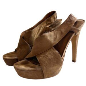 Diane von Furstenburg (DvF) best selling Zia Camel Suede Platform Criss Cross Sandal. Selling because I can't wear heels anymore.