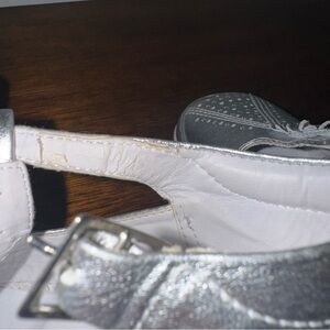 D’vanty Mary James Metallic Silver Leather T-Strap New WO Box Size EU 20 (US 5)