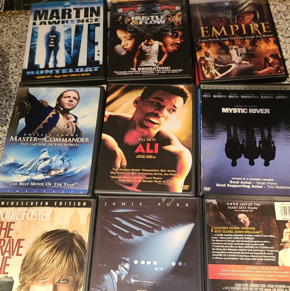 ALI, Martin Lawrence Run Tell Dat, Mystic River, Ray , The Brave One, Hustle & Flow , Empire, The Black Dalia & Master & Commander, can be sold separately