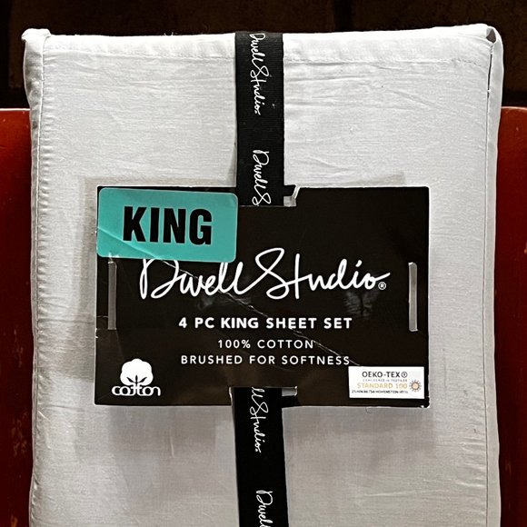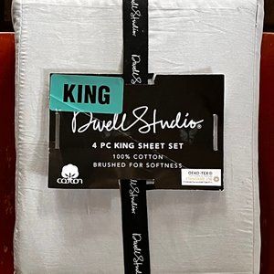 NEW Dwell Studio KING Size GREY Sheet Set - 100% Cotton Percale - Solid Light Gray