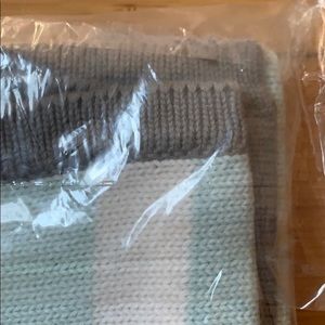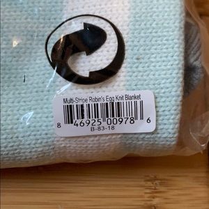 Dwell Studios cotton knit blanket in “Robin’s Egg Blue” perfect for baby! This super soft blanket has stripes in light blue, white and gray. It measures 30”X40”. Brand new with tags in original package. Ideal for a baby gift. Smoke free Pet free home.