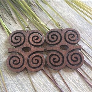 Dwennimmen Ram's Horns Wood Adinkra Earrings