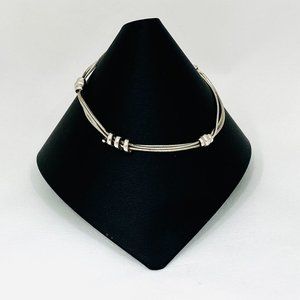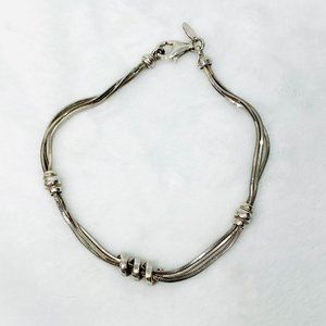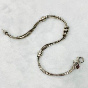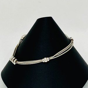 Dyadema made in Italy sterling bracelet with three square snake chains and three sterling coil stations. The coil stations are fixed and do not slide on the chains. Lobster clasp. Dyadema logo tag attached. Great overall condition. Length is 7.5" including the clasp. Best fit for 7" or under wrist. See photo of bracelet mandrel.