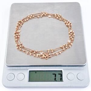 This vintage Dyadema necklace from Italy features a luxurious 36-inch rose gold tone chain accented with bezel-set cubic zirconia and delicate bead stations. Its elegant, versatile design allows it to be worn long or doubled for a layered look. A refined and timeless accessory that transitions effortlessly from day to night.