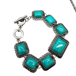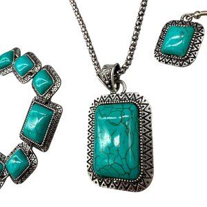 Dyed Howlite Crystal Square Pendant Chain Necklace Bracelet Earrings Set
