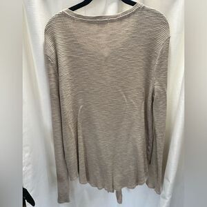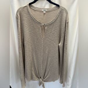 Dylan Cream Waffle Knit Cotton Long Sleeve Pullover, Keyhole Front & Tie Waist