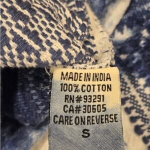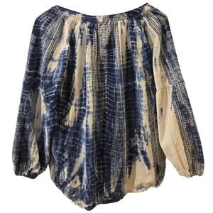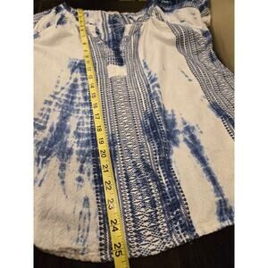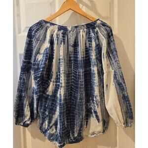 Dylan Embroidery Tie Dye White Blue Indigo Boho Tunic V-Neck Cotton Top Small