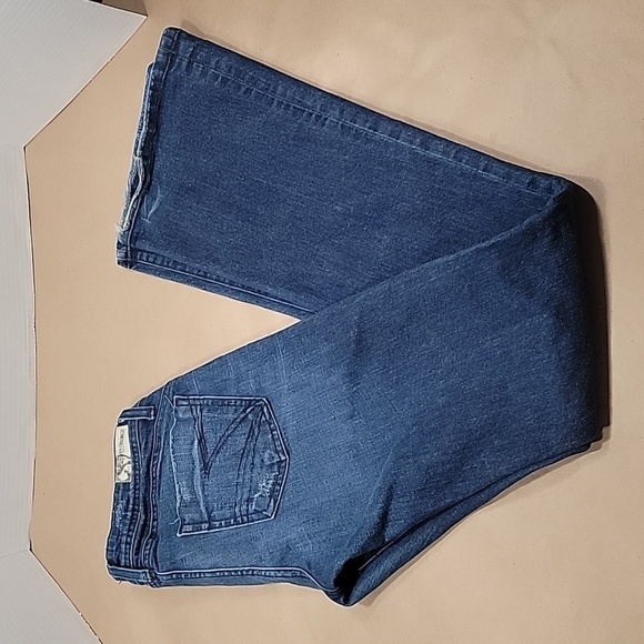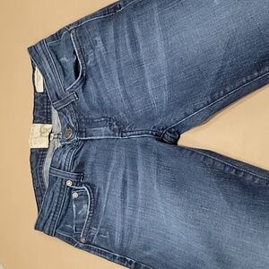 Dylan George "Alexandra" Flare Jeans Size 26 Distressed Low Rise, Med-Dark Wash. Factory Whiskering, Great Condition, only flaws are Heel Drag at back Hems. (Shown in Photo #2). Still have a TON of life left in them! No stains, rips, holes or snags. No puckering/pulling at crotch area. Please refer to measurements in photos to ensure proper fit.