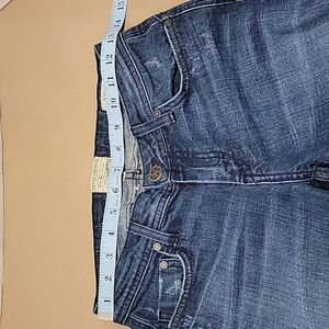 Dylan George "Alexandra" Flare Jeans Size 26 Distressed Low Rise, Med-Dark Wash