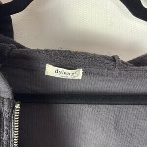Gently Used Dylan Full Zip Hoodie. This is a women's small. Darker brown color with a corduroy look and vertical ribbing. Boxy front pockets. Medium weight. Cute!