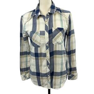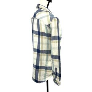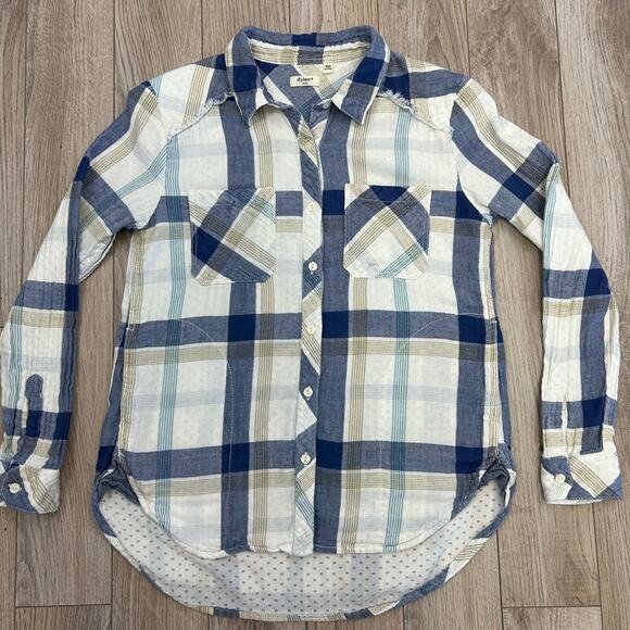 100% Cotton Plaid Shirt with Pockets and Frayed Hem Detail by Dylan in Size Small.