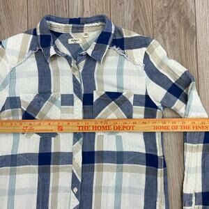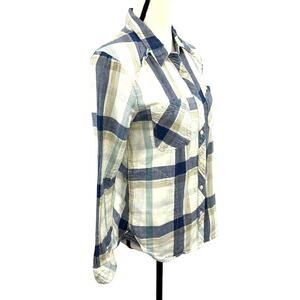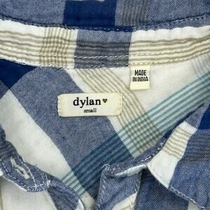 Dylan Ivory Plaid Frayed Hem Pocket Button Long Sleeve Sz S MSRP $120