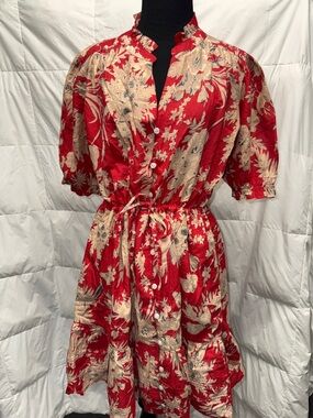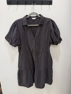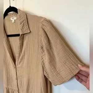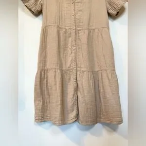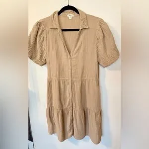 Dylan Khaki Cotton Button-Up Casual Summer Short Sleeve Parker Dress- Size Small