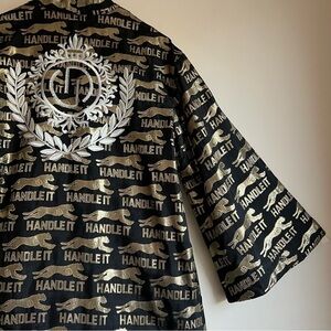 Amazing "Handle It" jacket in black with allover metallic gold embroidery. Guaranteed to make a statement! Edgy, versatile piece for the bold in you:)