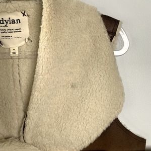Dylan Los Angeles Faux Sherpa Suede Vest Open Front Brown M. This gorgeous on-trend faux sherpa vest is the on-trend item of the season. Has a light spot on the collar (picture attached). Easily removed with a light wet rag. #Boho, #sherpa, #brown sherpa, #indie.