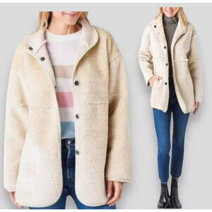 Dylan Lux Jacket Women Small Suede Sherpa Reversible Coat Cream Snap Button Cozy
