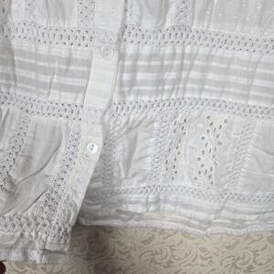 Dylan Patchwork Top sz XL White Cotton Button Front Embroidered Boho Fairycore
