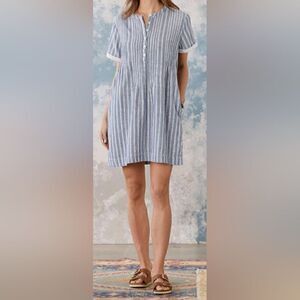 Dylan Plaza Dress Blue and White Stripe Short Sleeve (Sundance Catalog)