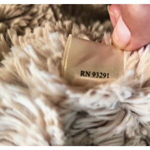 Dylan Classic Silky Faux Fur Hooded Vest, light brown tan color. Wrap yourself in the plush softness of Dylan's Classic silky faux-fur hooded vest, made from silky-soft faux fur with a cozy oversized hood. 100% polyester (Faux Fur), no size tag but measures 22" bust measuring back from pit seam to pit seam, 23" long measuring from back collar to hem. 26" long at the front. Sooooo soft.
