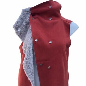 Dylan red faux shearling vest snap closure Medium