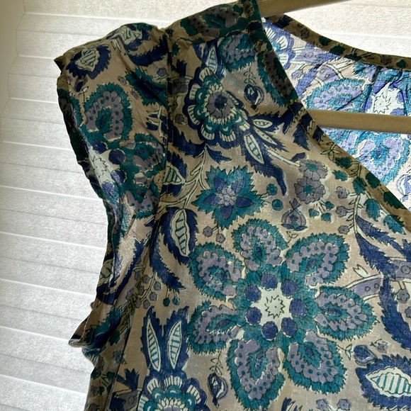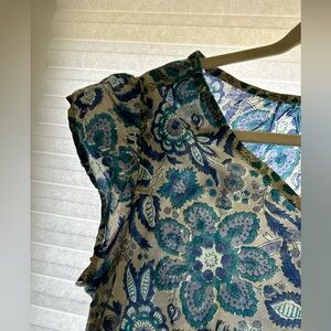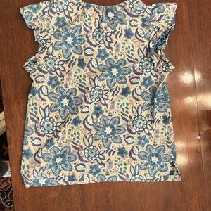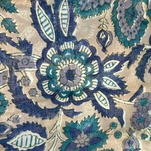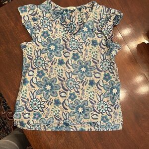 100% cotton light-weight summer top. Beautiful blues on a light gray background