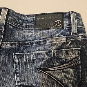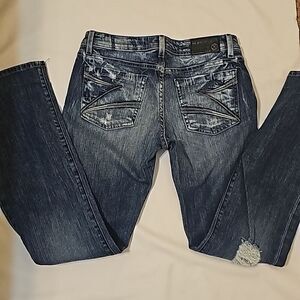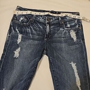 Bootcut. distressed. great pre-owned condition. they have been professionally hemed. please refer to photos for more details and measurements. smoke-free home