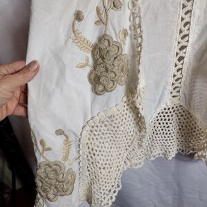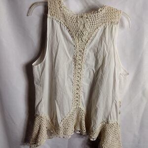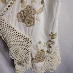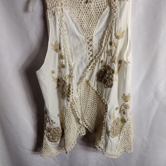 Dylan cotton crochet vest. beautiful crochet flowers and insets. chest 18" length 24". OO