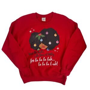 Dyna Smiles Women’s Red Graphic Afro Ornament Christmas Sweatshirt Size Small S