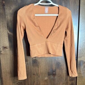 Dynamic Orange Fitted Crop Blouse one size long sleeve deep v neck ribbed