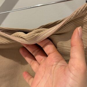 Chic camel mini skirt with ribbed texture. Ideal for versatile styling.