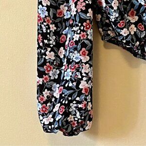 Dynamite Dark Floral Open Neck Long Sleeve Feminine Flowy Crop Top Size US S