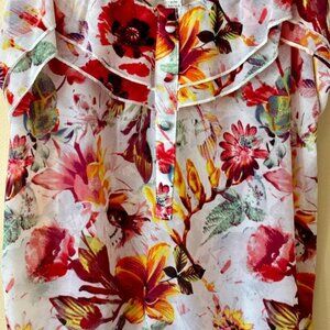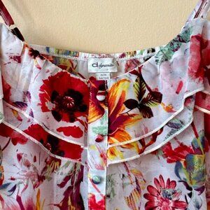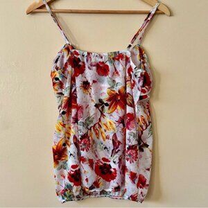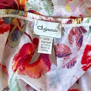 Dynamite Floral Flowy Spaghetti Strap Button front Ruffle Blouson Shirt Size M