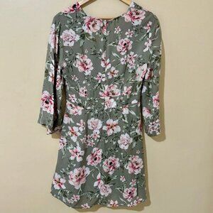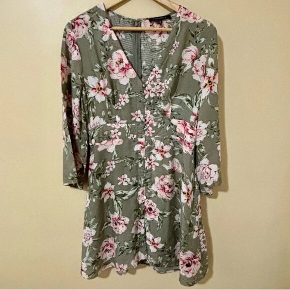 Dynamite Floral V Neck Sage Green Dress with Mini Skirt Size M