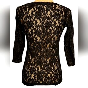 Super cute see-through floral lace 3/4 sleeve top. Petite T-179