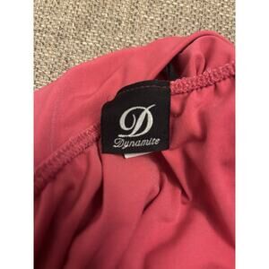 The Dynamite Pink Y2K Halter Tank Top in size Medium is a stylish and trendy piece for women. This sleeveless top features a V-neckline, making it a versatile option for various outfits. The pink color adds a fun and vibrant touch, perfect for making a statement in any ensemble. Made by the brand Dynamite, this tank top is sure to be a fashionable addition to any wardrobe.