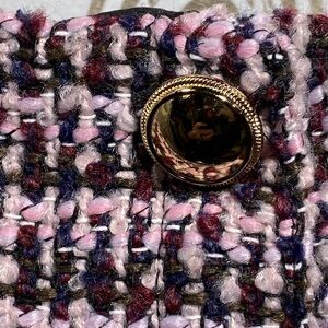 Stylish tweed mini dress with button details. Perfect for versatile wear.