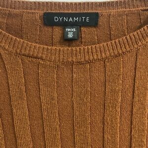 Ribbed knit top by Dynamite. Color is a copper/rust (brown with orange undertones). Size XS. Worn with mild pilling.