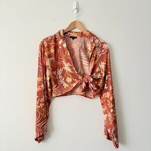 Dynamite SET Heidi Flowy Wide Leg Pants Maeve Tie Front Top Satin Floral Small