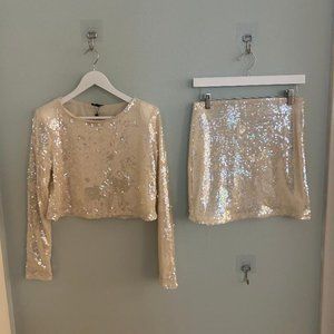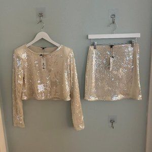 Dynamite Sequin Mini Skirt & Long Sleeve Crewneck Sequin Top set NWTO *SMALL*