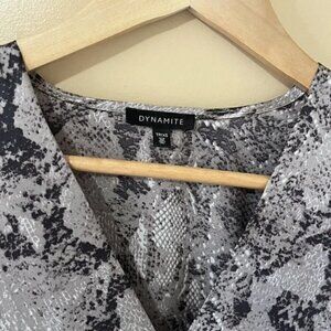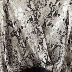 Dynamite Snake Print Satin V Neck Long Sleeve Bodysuit Size XS