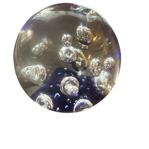 Elegant glass paperweight featuring intricate bubble design. Perfect for desk decor.