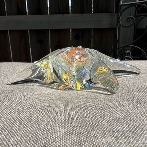 Dynasty Gallery Glass Paperweight Orange Blue and Clear Starfish Figurine GITD