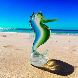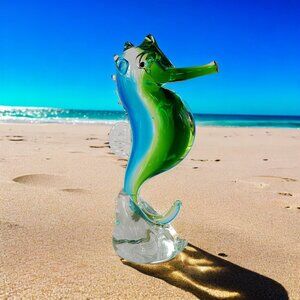 Dynasty Gallery Seahorse Figurine Blown Art Glass Blue Green Seaside Decor 5.75"