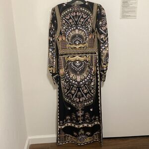 Dynasty V-Neck Maxi Dress with Long Balloon Sleeve & Side Slits. Size XS.