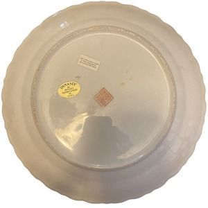 Edging of plate has edging, bottom of plate has some ware marks as can be seen in the pictures provided.